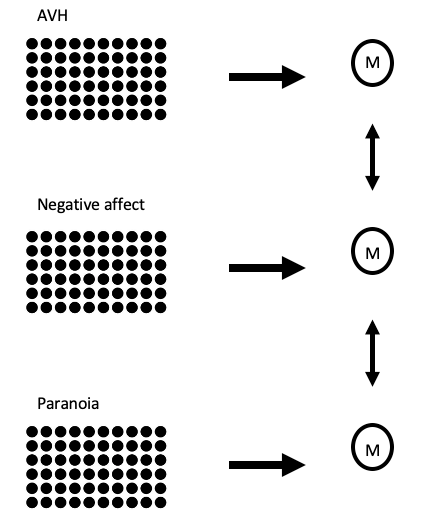 The network visualisations can be found in our published paper (Jongeneel et al., 2020). Results showed that voice-hearing occurs together with the other mental state variables, but it seems to be only connected to uncontrollable thoughts on the longer term. This is in contrast to previous research and this might be explained by our use of partial, i.e. unique, correlations. Also, we could not replicate previous findings that voice-hearing is predicted by any of the factors. This might be due to our analytic approach (multilevel network analysis versus single regression analyses as previous studies used), or our study sample; the participants in our study were severely ill and therefore potentially beyond the ‘tipping point’ of fluctuating clinical symptoms to a more chronic state whereby symptoms mainly maintain themselves.